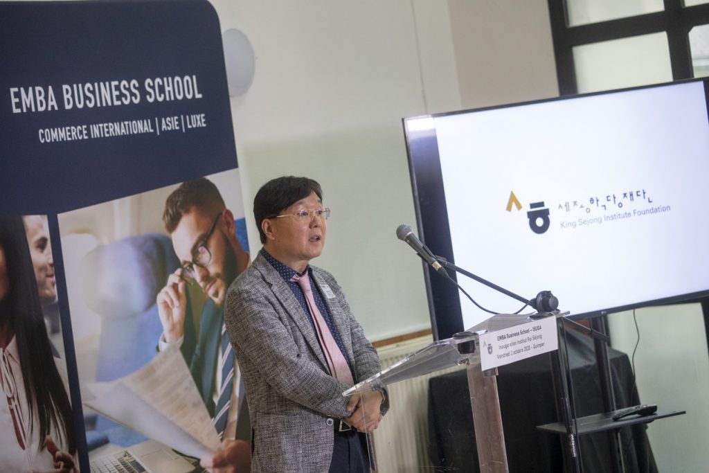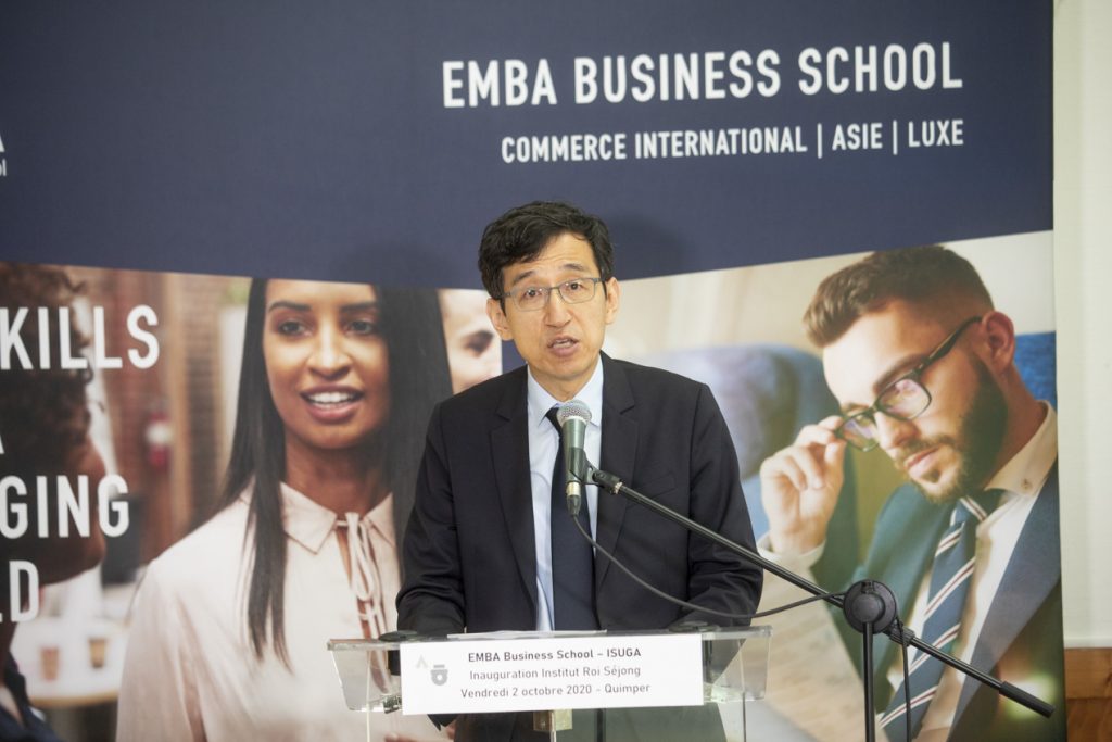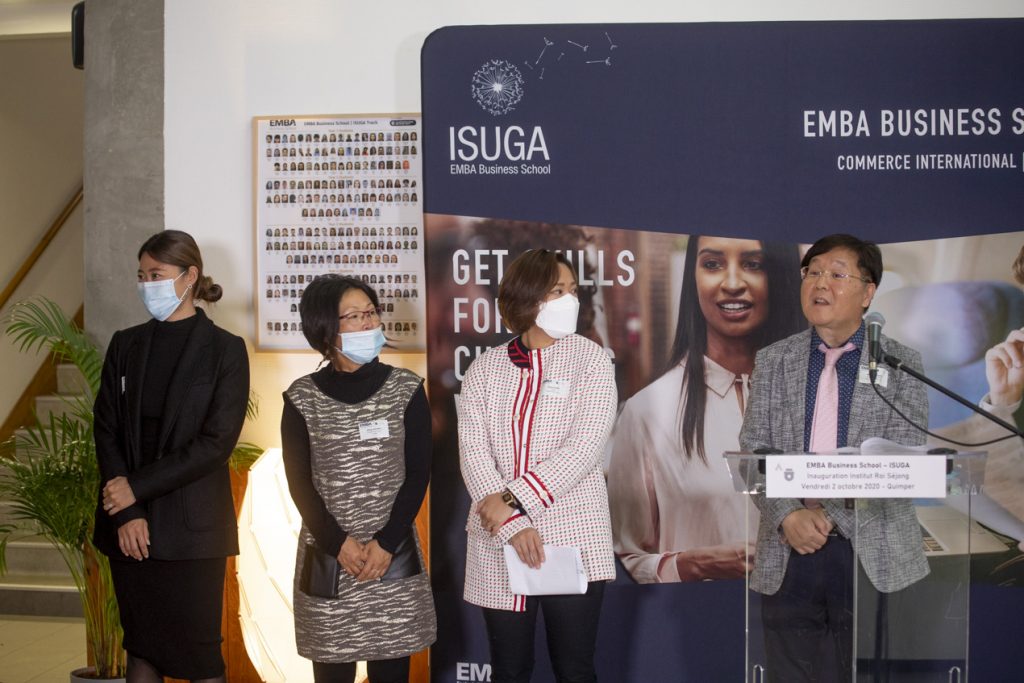 On Friday 2nd October 2020, the Roi Sejong Institute Quimper was inaugurated in the presence of the South Korean Ambassador, Mr. CHOI, of the Manager of the Korean Cultural Centre and of the official school partners: the CCIMBO (Chamber of Commerce and Industry) in Quimper and the Department of Finistère. A great honour and a recognition of the expertise of the ISUGA formation process in terms of teaching and promoting the Korean language and culture in France.